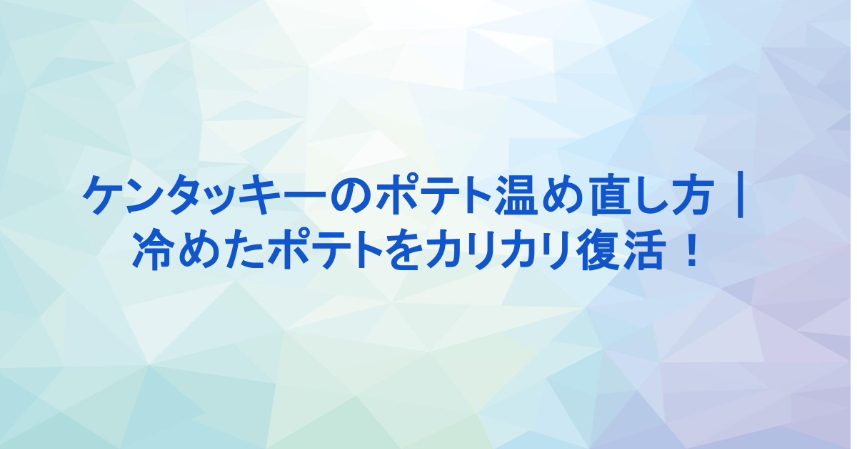 この記事では、電子レンジ・トースター・フライパンなど、どのおうちにもある身近な調理器具を使って、ケンタのポテトを美味しく温め直す方法をやさしく解説していきます。