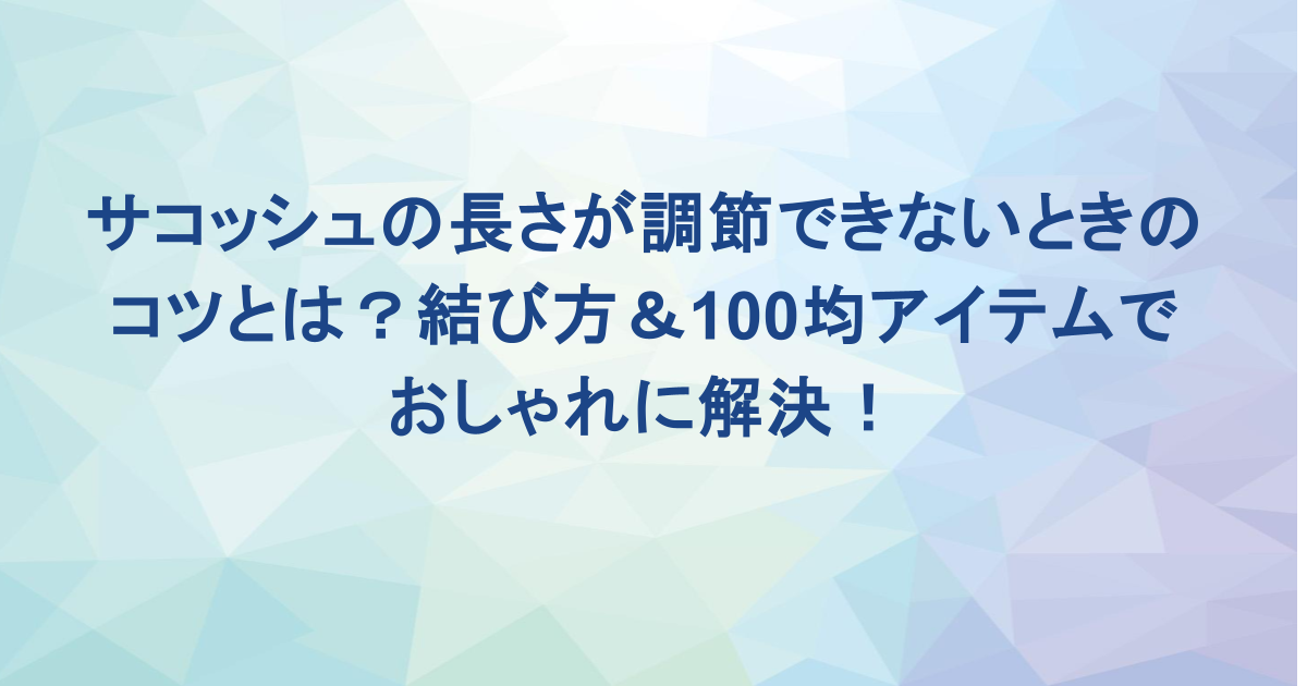 この記事では、そんなお悩みをスッキリ解決するために、サコッシュの長さを自分にぴったり合わせるための方法を、丁寧にわかりやすくご紹介していきます。基本の結び方テクニックはもちろん、誰でも手軽に取り入れられる100均アイテムの活用法、さらには外出先でもできる応急処置や、そもそも購入時にチェックしたいポイントまで、幅広くカバー。