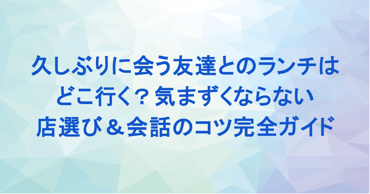 そんなふうに感じること、ありませんか?昔は気軽に話せていたのに、久々となると何から話せばいいかわからない。久しぶりだからこそ、相手にどう思われるかも気になってしまう…そんな経験をしたことがある方も多いかもしれません。数年ぶりの再会や、久しぶりに連絡を取った友達とのランチは、嬉しさと同時に少しの不安もつきものです。でも、ちょっとした準備や工夫をしておくことで、「会ってよかったな」と思える時間に変えていくことができます。この記事では、女性同士で気兼ねなくランチを楽しむためのお店選びのポイントや、会話が自然に弾むヒントを、やさしい言葉でわかりやすくお伝えしていきます。目的や相手のタイプ、会う場所のエリアなど、実際によくあるシーンをもとに解説していくので、きっとあなたの再会プラン作りの参考になるはずです。