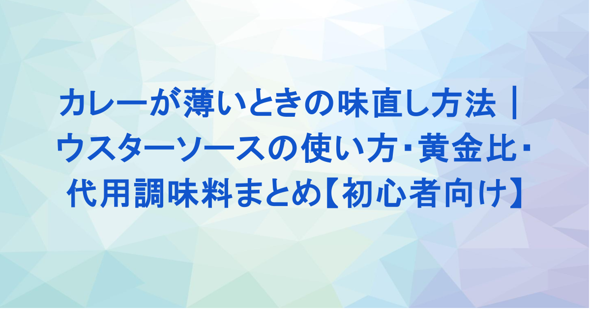 カレーが薄いときの味直し方法|ウスターソースの使い方・黄金比・代用調味料まとめ【初心者向け】